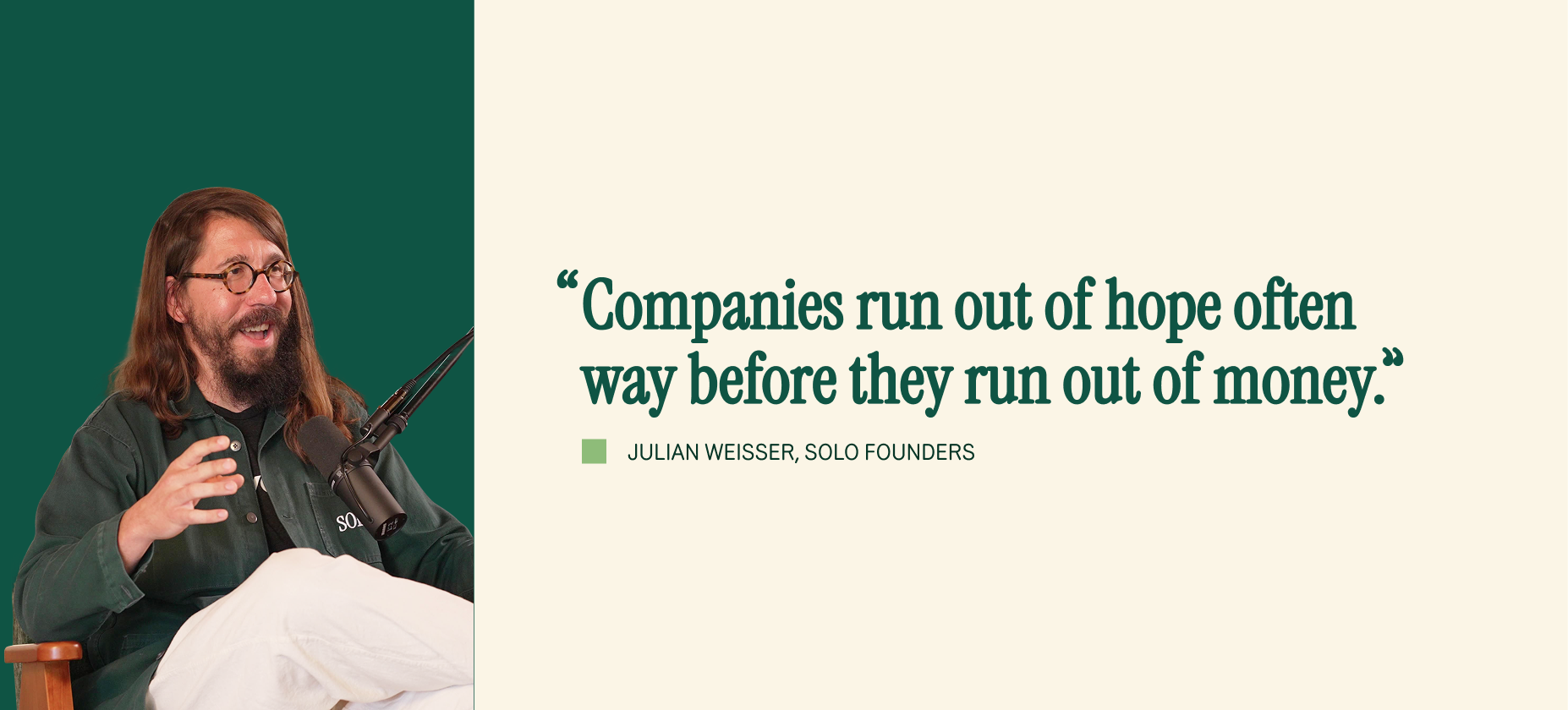When David asks what actually kills startups, Julian skips the usual list (product-market fit, unit economics, talent) and goes straight to hope. Companies run out of hope long before they run out of money. The burn rate is the clock on the wall — the real failure happens when the founder can no longer carry the belief through a bad stretch.